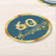 Posavasos Redondo De Papel 60 cumpleaños notas de oro verde azul verde azulad