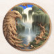 Posavasos Redondo De Papel Águila Majestuosa Volando junto a Cascada