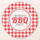 Posavasos Redondo De Papel BBQ de la familia del patrón de Gingham blanco roj