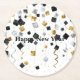 Posavasos Redondo De Papel Black Gold Happy New Year Confetti