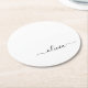 Posavasos Redondo De Papel Black White Modern Script Girly Monograma Nombre