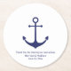 Posavasos Redondo De Papel Boda ancla náutica azul marino