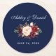 Posavasos Redondo De Papel Boda azul acuarela borgoña