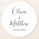 Posavasos Redondo De Papel Boda clásico blanco elegante y minimalista