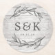 Posavasos Redondo De Papel Boda de Monograma de Hoja de Laurel Rústico