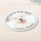Posavasos Redondo De Papel Boda de perros Staffy de Pitbull blanco personaliz