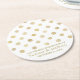 Posavasos Redondo De Papel Boda de puntos modernos de polka blanco y dorado