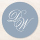 Posavasos Redondo De Papel Boda Monograma Dusty Blue Elegant Script Simple