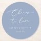 Posavasos Redondo De Papel Bodas saludan a caligrafía azul turbio