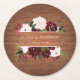 Posavasos Redondo De Papel Borgoña y Boda floral de Rubor