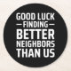 Posavasos Redondo De Papel buena suerte encontrando mejores vecinos que nosot
