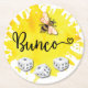 A los jugadores de Bunco les encanta el juego de los dados Bunco. Diseñado para Queen Bee. Acuarela con un toque de amarillo y tres dados de bunco afortunados. ¡Sigue rodando!