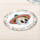 Posavasos Redondo De Papel Calavera de azúcar con Sombrero