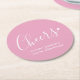 Posavasos Redondo De Papel Cheers modern pink and white heart script coasters