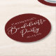 Posavasos Redondo De Papel Chic Burgundy Bachelorette Party Personalized