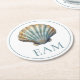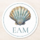 Posavasos Redondo De Papel Coastal Blue Scallop Seashell Monogram