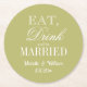 Posavasos Redondo De Papel Comer beber y estar casado boda verde oliva