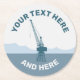 Silhouette de grúa de carga de astillero. Icono del vector con color de personalizable. Dos campos de texto en círculo.