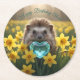 Posavasos Redondo De Papel Cute March Hedgehog with Aquamarine Heart