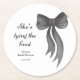 Posavasos Redondo De Papel Despedida de soltera con lazo negro Ella está atan