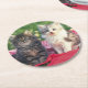 Posavasos Redondo De Papel Dos gatitos que se sientan en una manta