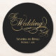 A formal, elegant black wedding paper coaster with faux gold calligraphy script.