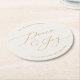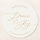 Posavasos Redondo De Papel Elegant Peace & Joy Gold Script Christmas