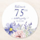 Posavasos Redondo De Papel Elegante fiesta de cumpleaños 75 de Floral Púrpura