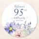 Posavasos Redondo De Papel Elegante fiesta de cumpleaños 95 de Floral Púrpura