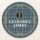 Posavasos Redondo De Papel Elegante Monograma Cuadrada de Ventana en Negro y
