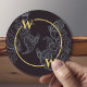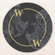 Posavasos Redondo De Papel Elegante Monograma Paisley Negro Oro