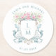 Posavasos Redondo De Papel Elegante Rosa Escudo con Bow | Boda de monograma