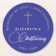 Posavasos Redondo De Papel Elegante simple Real Fe Azul Baptismo Cruz de Oro