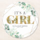 Posavasos Redondo De Papel Es un Chica Greenery Eucalyptus Gold Baby Shower