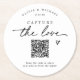 QR Code Boda Coasters: Ayuda a los huéspedes a compartir sus momentos favoritos con esta moderna montaña de código QR "Captar el amor". Los huéspedes simplemente escanean el código para subir las fotos a su sitio de intercambio de fotos boda, un detalle divertido y funcional que coincide perfectamente con la decoración de la recepción.