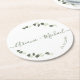 Posavasos Redondo De Papel Eucalipto verde Elegante Script nombres boda