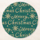 Posavasos Redondo De Papel Faux Gold y Green Merry Christmas Letters