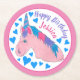 Posavasos Redondo De Papel Feliz cumpleaños mágico Fiesta de Unicornio rosa
