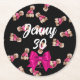 Posavasos Redondo De Papel Fideos de Fiesta de cangrejos (rosado sobre negro)