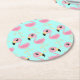 Posavasos Redondo De Papel Fiesta de cumpleaños de Flamingo Rosado