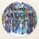 Posavasos Redondo De Papel Fiesta de esquí - Esquíes y polacos