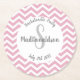 Posavasos Redondo De Papel Fiesta monograma de chevron rosa y blanco