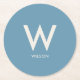 Posavasos Redondo De Papel Fiesta personal monograma azul claro