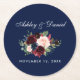 Posavasos Redondo De Papel Floral acuarela Burgundy Blue Boda