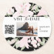 Posavasos Redondo De Papel Floral de guión suave QR Código Guardar fecha