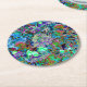 Posavasos Redondo De Papel Flores psicodélicas moradas y verdes del jardín li