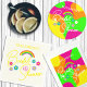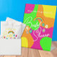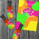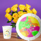 Bold and colorful retro bridal shower with flowers, rainbow, and peace sign