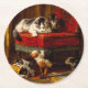 Posavasos Redondo De Papel Gato y gatitos jugando con silla