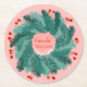 Ilustracion original de un Navidad decorado de abeto y ramas de pino con bayas rojas y nieve diciendo Veselé Vánoce, que significa Feliz Navidad en checo. En los modernos tonos de melocotón rojo y menta oscura.
