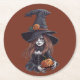 Posavasos Redondo De Papel Halloween-Hexe mit Kürbis -